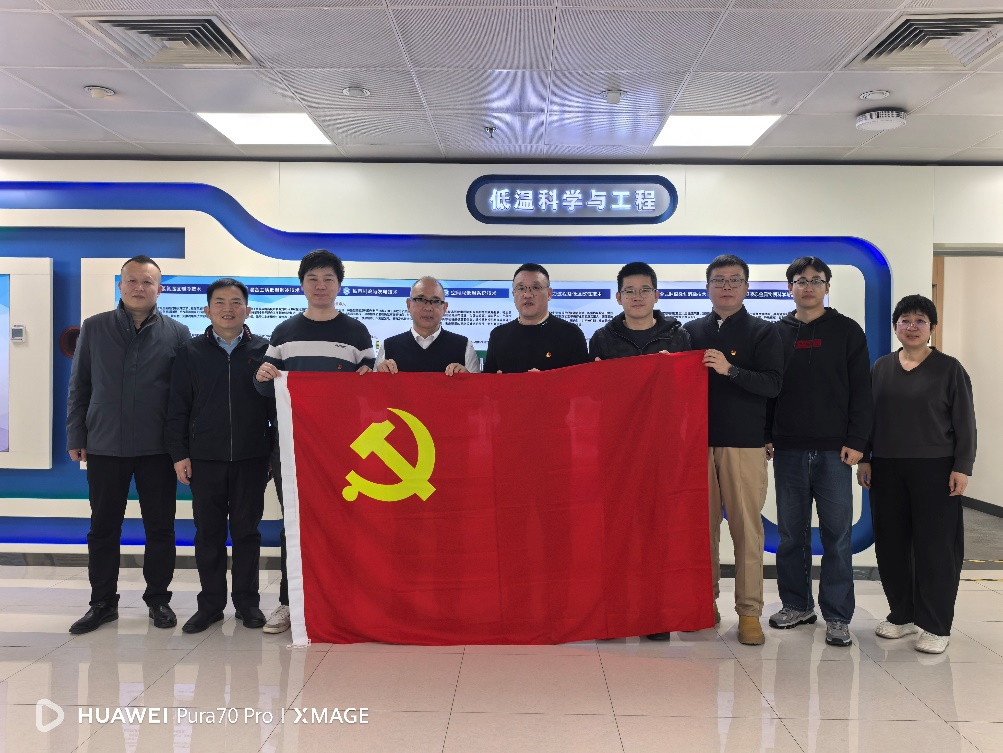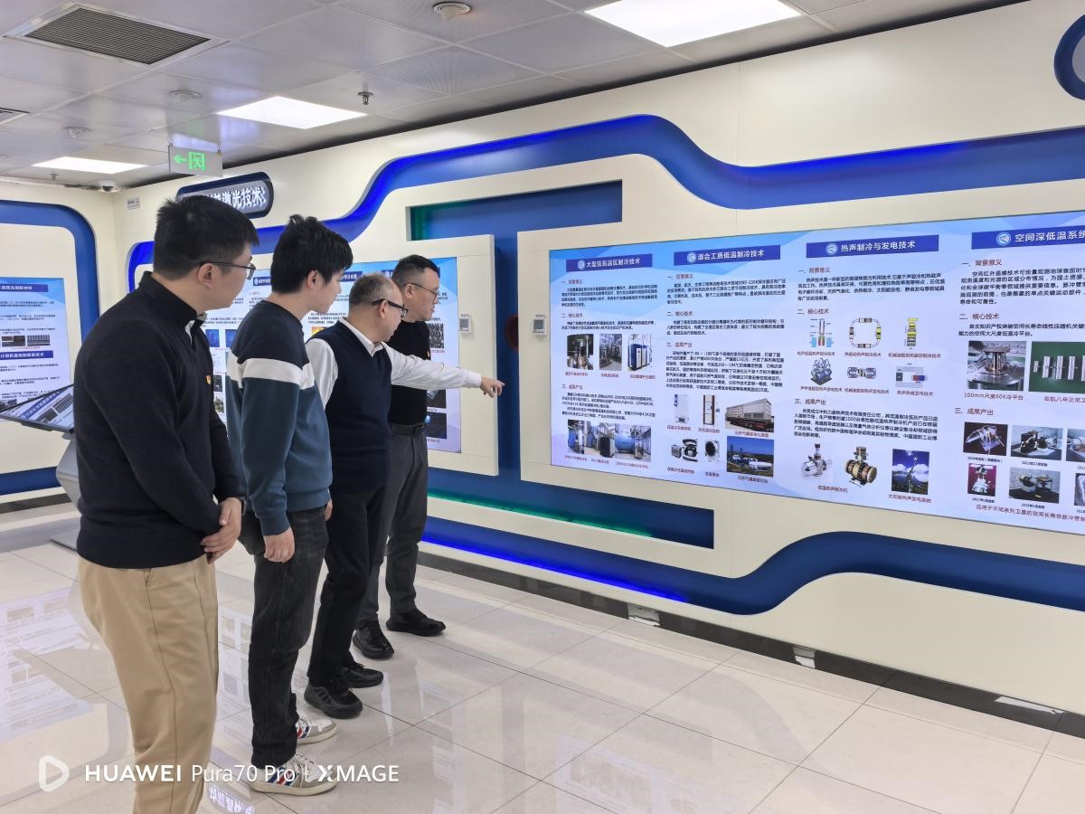 在热力过程与节能党支部杨鲁伟的引导下,万润新能源党支部一行参观了理化所展厅、重点实验室及党员活动室。