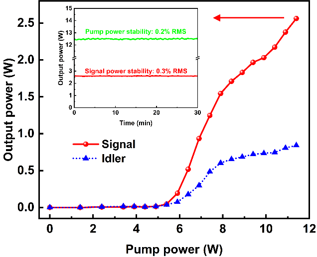 脉冲宽度达到皮秒(1皮秒等于一万亿分之一秒,ps)量级的超快激光,特别是波长位于近中红外(NIR-MIR)波段的光参量激光,在精密“冷加工”、生物医学成像、光通信以及前沿科学研究等领域有着重要的应用。其中波长位于1.5 μm波段的光源处于“人眼安全”波段,且在光纤中传输损耗低,是激光雷达和光通信的理想光源。然而,要获得兼具高脉冲能量、高光束质量和极短脉冲宽度的紧凑型超快光参量激光,一直是一项技术挑战。