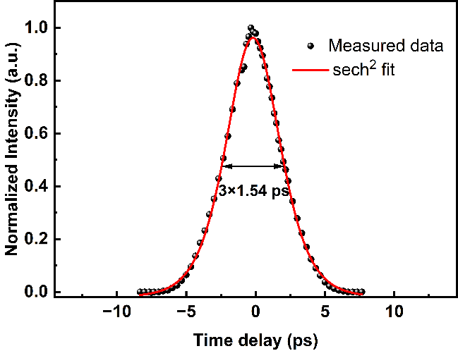 自相关法测量周期晶体阵列变频装置输出1.5μm信号光脉宽图