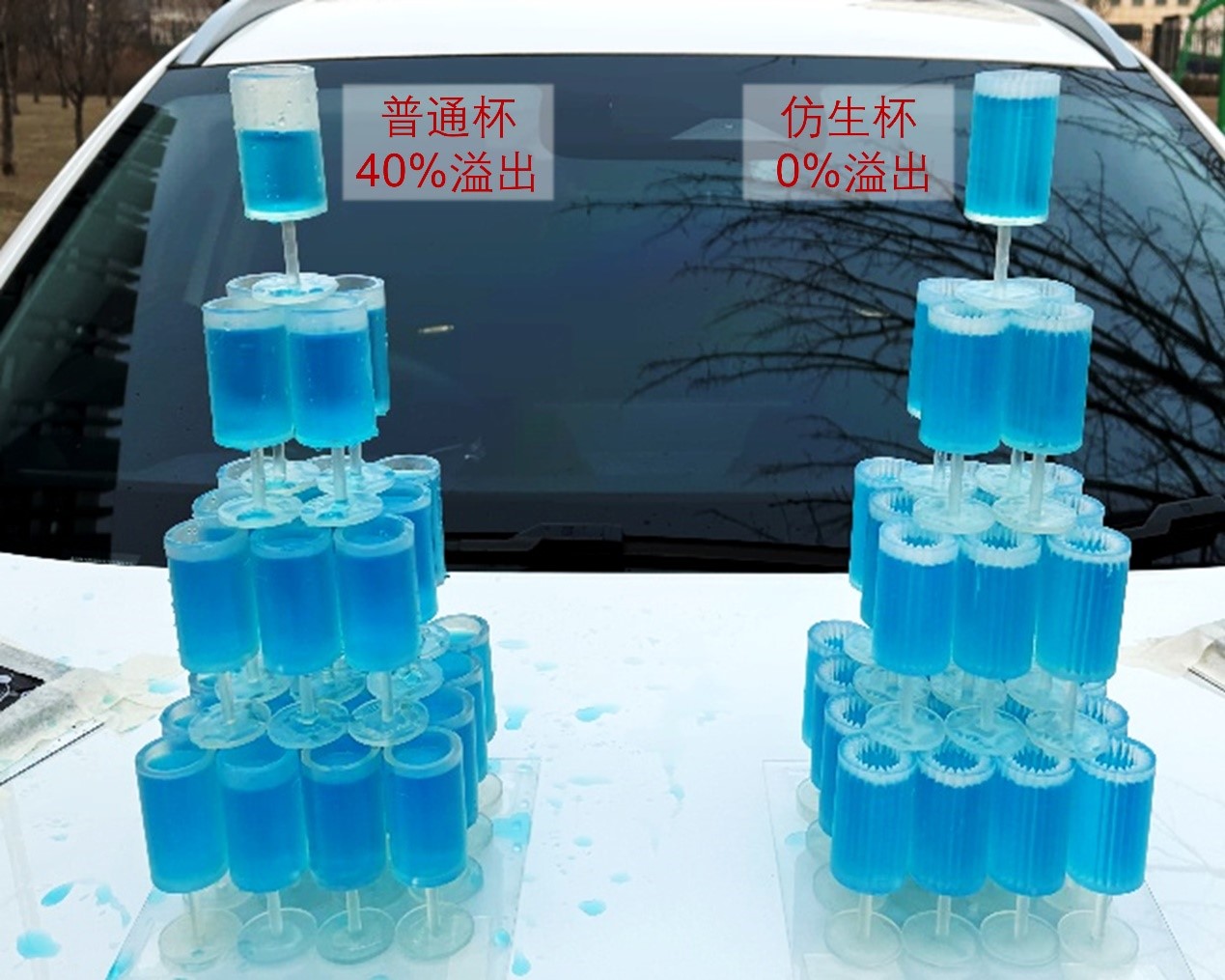 该容器性能显著提升:实验室振荡测试中可承受超5000次振荡无溢出(普通容器约15次);实地路测中,仿生杯“香槟塔”通过50个减速带后液体零溢出,而普通容器损失达40%。此项工作不仅为设计防溢液日常容器提供了方案,更在工业运输、航空航天及医疗液体输送等对稳定性要求极高的领域展现出广阔的应用前景。相关成果已发表于Science Advances上。
