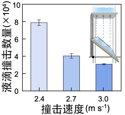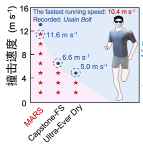 为验证MARS织物的耐用性与稳定性,研究团队开展了一系列严苛的系统性测试,结果均展现出优异性能。在动态防水性能测试中,2.4m/s速度的液滴单点连续撞击8万次,织物毫发无损;当液滴速度提升至11.6m/s(相当于百米飞人冲刺速度)时,织物仍保持完好、防水性能不失效。经20次标准洗涤后,其防水等级依旧稳定在行业高标准的4.5级。
