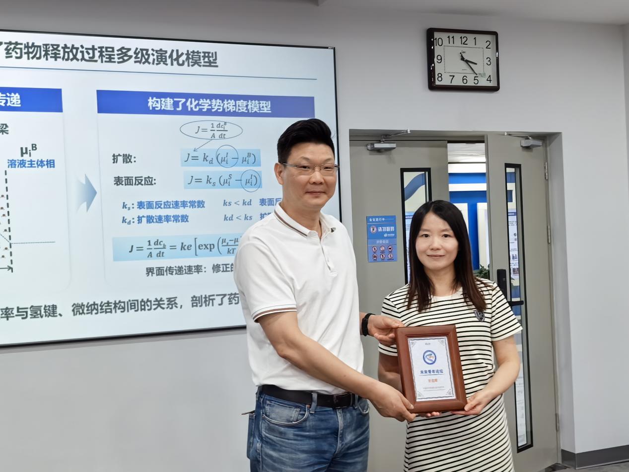 吉远辉教授长期致力于药物制剂智能设计与制备的应用基础研究。在报告中,她系统介绍了其团队在高端药物制剂智能创制方面的最新研究成果:针对复杂多尺度结构导致的性能调控难题,团队发展了基于分子结构的热力学参数精准预测新模型,并融合分子热力学理论构建了跨尺度神经网络架构,实现了理化性质数据的高效准确预测;以界面化学势为“桥梁”,建立了药物释放过程的多级演化模型,揭示了制剂稳定性与释药速率的关键调控机制;进一步构建了“制剂性能-多尺度结构-工艺参数”的定量构效关系,开发出面向制剂产品与工艺的智能设计系统。相关成果已成功应用于多种缓控释制剂的开发,并与金陵药业等企业深度合作,实现了药物新晶型、药物共晶及高端制剂产品的创制与转化。